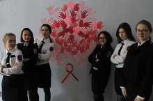18 мая учащиеся 9ю и 10б класса приняли участие в создании арт-обьекта, символа борьбы со СПИДом!