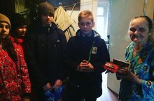 Гимадеева Сария Гараевна с улыбкой на лице встретила мальчиков и девочек 6б класса, которые пришли поздравить с наступающими праздниками. Пока мальчики бегали за продуктами, Сария апа коротко пыталась рассказать о своей долгой и тяжёлой жизни. Но, конечно, об этом быстро не расскажешь. И ребята ещё не раз придут к ветерану.
