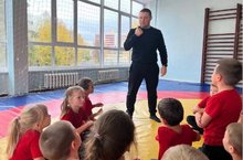 В 1ю классе начались занятия по спортивному самбо. Мастер спорта России по спортивной борьбе Бадыкшанов Евгений Уэлович (Генеральный директор АНО "СКСЕ "ЛЕГИОН17") обучает будущих юнармейцев азам самообороны.