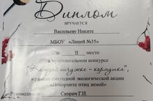 24 декабря состоялось награждение победителей и призеров муниципального конкурса "Каждой пичужке-кормушка", который проходил в рамках экологической акции "Покормите птиц зимой". Поздравляем с дипломом за ll место ученика 5б класса Васильева Никиту и его руководителя Скорич Г. И. Желаем дальнейших успехов.