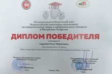 Поздравляем ученика 10г класса Садыкова Рената - победителя Регионального этапа Всероссийской олимпиады школьников по избирательному праву и избирательному процессу в Республике Татарстан.