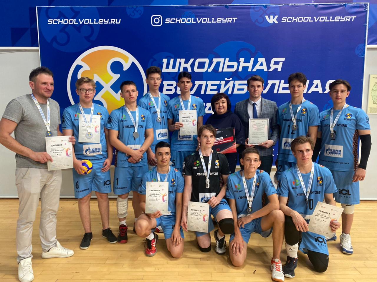35 нче лицейның яшүсмерләр волейбол командасын Татарстан Республикасы мәктәп волейбол лигасында көмеш медальләр белән котлыйбыз. Финал уенында безнең егетләр 16 нчы татар-Инглиз гимназиясенә оттырды. Республиканың башка районнары арасында икенче урын-лаеклы нәтиҗә (Тренеры: Газетдинов А. Р.).