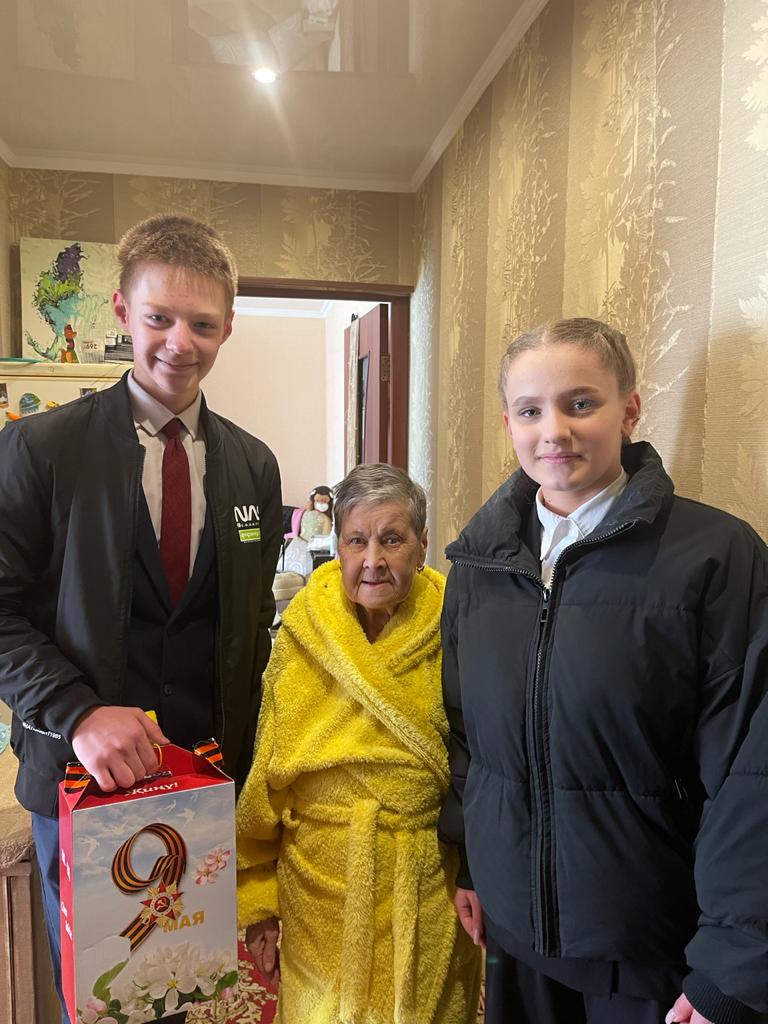 9 Май бәйрәме алдыннан безнең лицей волонтерлары Бөек Ватан сугышы ветераны Зарипова Мәдинә Хөснетдин кызын бәйрәм белән котладылар һәм азык-төлек җыелмасы тапшырдылар.