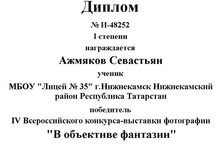 Поздравляем учеников 6В класса и их классного руководителя Кривошееву Светлану Анатольевну с отличными результатами в IV Всероссийском конкурсе-выставке фотографий "В объективе фантазии".