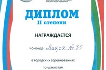 С 24 ноября по 1 декабря проводились соревнования по шахматам «Белая ладья». Команда лицея в составе: Зеленкова Данила-7в, Коровиной Ирины-7а, Хузина Ирека-6г, Рустамова Артура-5г заняли 2 место. Поздравляем!