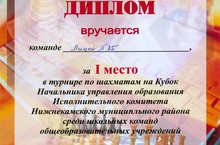 Турнир по шахматам на Кубок начальника управления образования ИК НМР среди школьных команд 20.12.2014 18-19 декабря в СОШ № 6 состоялся турнир по шахматам на Кубок начальника управления образования ИК НМР среди школьных команд. Команда лицея (учащиеся 5-9 классов) заняла первое место и в 3 раз завоевала кубок. Поздравляем!
