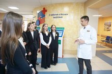 Многие из них в будущем мечтают стать врачами, потому все они с удовольствием окунулись в атмосферу белых халатов. Главная медицинская сестра Евгения Юдина в первую очередь познакомила школьников с приёмно-диагностическим отделением Центра экстренной медицины. Ребята узнали о том, как распределяются потоки пациентов, посмотрели на каком современном оборудовании работают врачи диагностических служб. Школьникам показали противошоковую реанимационную, магнитно-резонансный томограф, кабинеты УЗИ и эндоскопических исследований.