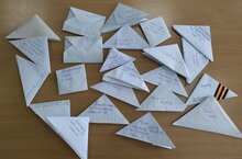 В лицее объявлен конкурс «Письмо солдату». Лицеисты 8 В класса приняли участие в акции. Многие были готовы поделиться сокровенными мыслями. В этих письмах — свет любви, тепло юных сердец, уважение и благодарность ветеранам, восхищение мужеством защитников Родины той эпохи, это своеобразное послание людей из будущего, зачастую не задумывающихся о ценности мирной жизни, легко и беззаботно бегущих по жизни в бессмысленной суете, почти позабывших о том, что такое письмо и как его писать. А между тем в этих маленьких детских треугольничках все: беспокойство, гордость, благодарность, пожелания, восхищение.