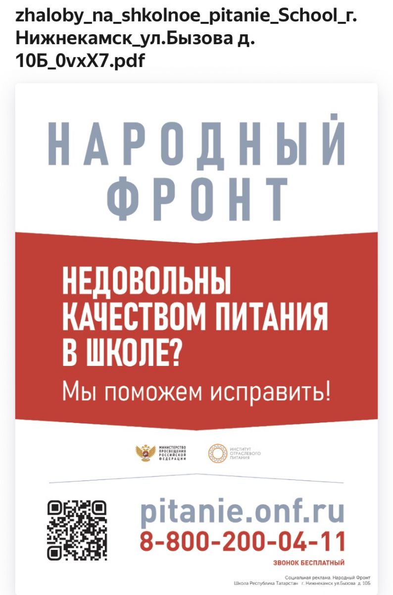 Плакат с QR-кодом для контроля качества школьного питания