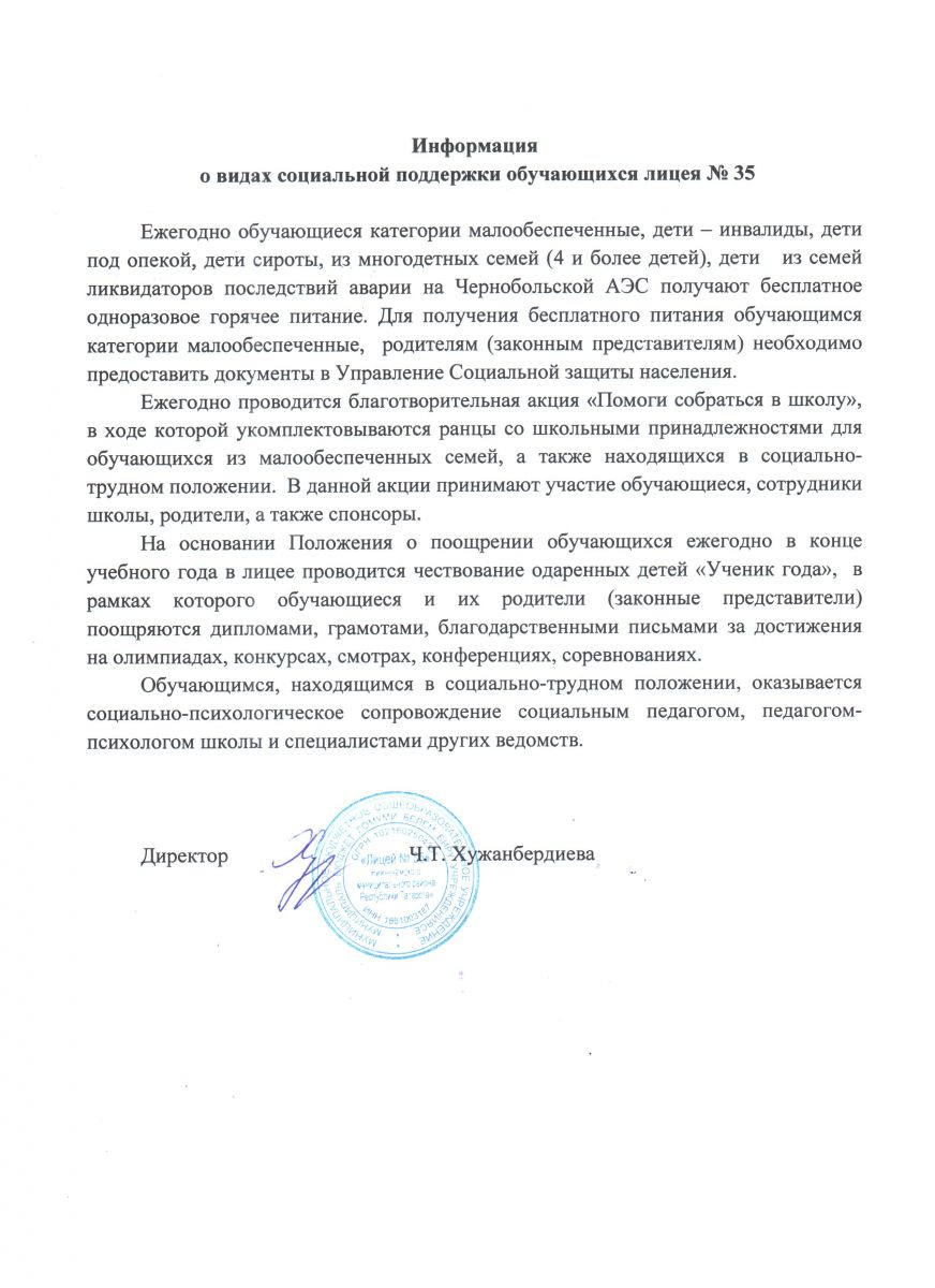 Информация о видах социальной поддержки обучающихся