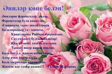 Бәйрәмнең кайсы да җанга ял алып килә.Шушы бәйрәм көне елмаеп баккан кояшның матурлыгын,табигатьнең самимилеген өстәп,күңелегезгә шатлык,тәнегезгә сихәтлек,өегезгә иминлек алып килсен.