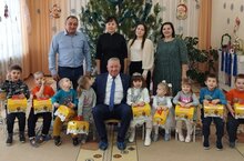 АО "Геология" оешмасы да балаларга яңа ел бүләкләре тапшырды.