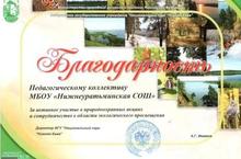 Наша школа уже несколько лет активно сотрудничает с Федеральным государственным учреждением "Национальный парк "Нижняя Кама". В рамки этого сотрудничества входят участие в республиканских экологических акциях, например, таких, как "Марш парков" и "Дни наблюдения птиц", всевозможных экологических конкурсах, а также информационное сотрудничество в области экологического просвещения. И вот сегодня к нам пришла Благодарность "За активное участие в природоохранных акциях и сотрудничество в области экологического просвещения". От лица коллектива нашей школы выражаю нашу Благодарность Национальному парку "Нижняя Кама" и поздравляю их с Юбилеем, ведь в этом году им исполняется 20 лет. Мы всегда рады помогать вам и защищать ваши (да и наши общие ;)) интересы.