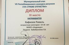 Двое учащихся нашей школы-интерната - Хафизов Равиль и Нуриева марьям стали победителями муниципального этапа VII Республиканского конкурса рисунков "На страже Отечества"