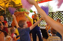 Праздничный обед с интересной познавательно – развлекательной программой и « Шоу мыльных пузырей» в честь окончания июльского реабилитационного заезда состоялся в ресторане «Амбар». Удобный, уютный и вместительный зал, любезный персонал, быстрое и аккуратное обслуживание, вкусный обед в стиле «детский» вариант, игры, танцы, сладкие призы – все это создало доброжелательную атмосферу прощальному обеду. Впереди, конечно, еще несколько дней реабилитации, но вспоминая интересные дни, проведенные вместе, дети были огорчены лишь тем, что смена прошла так быстро.