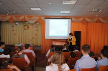 Сначала была организована встреча с учащимися начального звена, на втором этапе слушателями стали среднее и старшее звено. Эльмира Саяровна ознакомила учащихся с первичными навыками управления личными финансами, с многообразием современных финансовых услуг, рассказала об истории развития банковской системы. Вниманию были представлены яркие и интересные презентации, которые включали в себя очень полезную информацию. В конце выступления всех детей ждали памятные подарки от ПАО «АКИБАНК».
