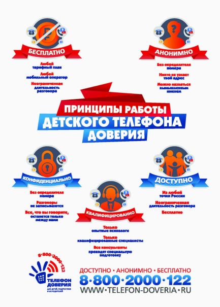 Задача этого телефона-помочь детям, подросткам и их родителям в сложных жизненных ситуациях. В службе телефона доверия работают психологи-консультанты, прошедшие специальную подготовку. При звонке не нужно указывать фамилию, имя, отчество, место жительства. Также звонок на телефон доверия (8-800-2000-122) бесплатный.