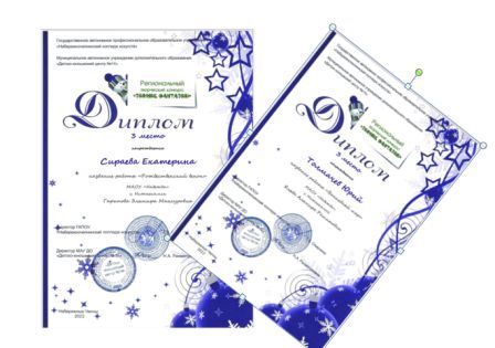 Ученики 4-х классов приняли участие в Региональном творческом конкурсе «Зимние фантазии». Сираева Екатерина и Толмачев Юрий стали дипломантами III степени.