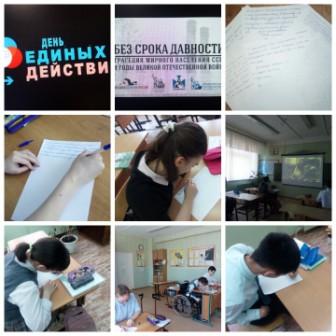 19 апреля 2021 года — День единых действий в память о жертвах преступлений против советского народа, совершенных нацистами и их пособниками в годы Великой Отечественной войны. Целью всероссийской акции является сохранение исторической правды о преступлениях нацистов и их пособников. В рамках акции в школе прошел единый урок с просмотром видеофильма «Без срока давности» и написанием письма в будущее «Нельзя забыть» учащимися нашей школы. Мероприятие вызвало живой интерес обучающихся.