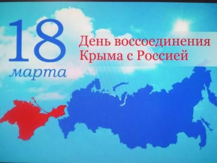 В рамках Единого урока, приуроченного ко Дню воссоединения Крыма с Россией, в школе прошло внеклассное мероприятие «Россия. Крым. Севастополь», в ходе которого обучающиеся вспомнили историю Крыма, события памятной даты, посмотрели фильм об этом. Желающие прошли тестирование на знание истории Крыма с получением сертификата. Мероприятие вызвало живой интерес учащихся