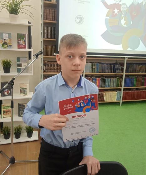 Опубликовано: 22.03.2023Поздравляем Гаранина Ивана с победой в районном этапе Всероссийского конкурса юных чтецов "Живая классика". Так держать!