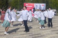 В самом сердце сквера Лемаева гостей встречали вальсирующие пары народного коллектива театра танца "Второе дыхание" (рук. Каримуллина Э. Ю., хореограф Малова А.В.), к которым могли присоединиться все желающие. В их числе и сотрудники Центра детского творчества.