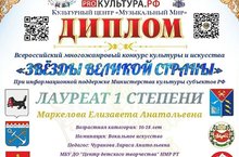 Поздравляем воспитанницу ансамбля русской песни "Звонница" Маркелову Елизавету с победой на Всероссийском многожанровом конкурсе культуры и искусства "Звезды великой страны" - Лауреат 1 степени (педагог Чуракова Л. А.)