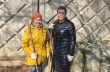 Сегодня на его территории состоялся субботник, на который вышли сотрудники всех учреждений культуры, среди которых старший методист Центра детского творчества Грекова Т. П. и методист Джангидзе С. Р. -