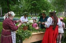 Центр детского творчества представила педагог дополнительного образования Маркелова Н. И. Она провела мастер-класс по изготовлению венков. Ребята плели венки из цветов и веточек берёзы и дарили их друг другу. Также на празднике выступила воспитанница вокального ансамбля театра танца "Второе дыхание" Маркелова Елизавета (педагог Чуракова Л. А.)