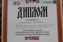 Дипломом в номинации "Народный костюм" за костюм казачки наградили педагога дополнительного образования Центра детского творчества Маркелову Н. И. а также воспитанницу вокального ансамбля театра танца "Второе дыхание" Маркелову Е. и её педагога Чуракову Л. А. за активное участие в фестивале.