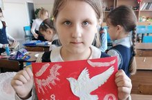 В объединении "Радуга творчества" прошёл мастер-класс по изготовлению "Открытки для ветерана" ( пед. Хакимова Л. Ф.)