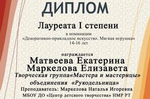 Маркелова Елизавета и Матвеева Екатерина - стали лауреатами 1 степени на VII Международном фестивале-конкурсе детского, юношеского и взрослого творчества "Art-Олимп".