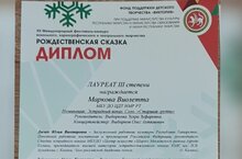 Воспитанница вокального объединения "Статус" Центра детского творчества Маркова Виолетта стала лауреатом III степени XII Международного фестиваля-конкурса вокального, хореографического и театрального творчества "Рождественская сказка" (г.Казань)