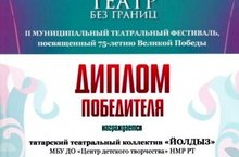 Подведены итоги II Муниципального театрального фестиваля, посвященного 75-летию Великой Победы «Театр без границ». Татарский театральный коллектив "Йолдыз", показав своё мастерство и блестящее исполнение, покорил членов жюри и зрителей. От всей души поздравляем коллектив и бесменного руководителя – Ибрагимова Альберта Хамзиевича с заслуженной наградой в номинации «За яркое воплощение человеческого характера и высокую гражданскую позицию»!