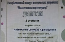 Набиуллина Светлана Афанасьевна приняла участие в Республиканском конкурсе методических разработок "Методическая сокровищница " и получила сертификат о публикации в сборнике. Поздравляем!
