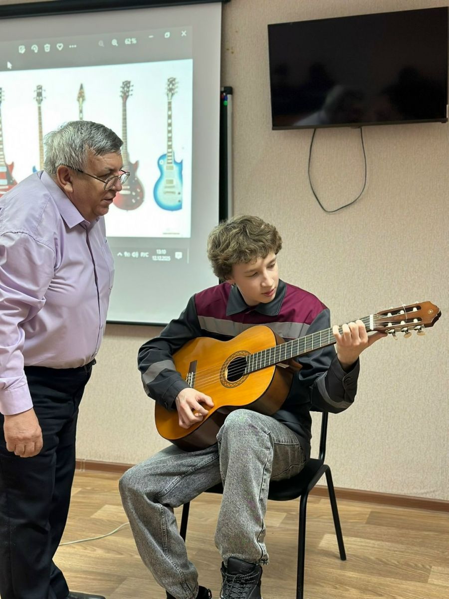 Опубликовано: 12.12.202512 декабря преподаватель Шестернев Сергей Викторович провел мастер-класс по гитаре с учащимися колледжа