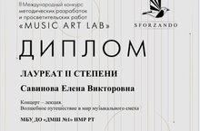 Поздравляем преподавателя оркестрового отдела ДМШ №1 Савинову Елену Викторовну с лауреатсвом II степени во II Международном конкурсе методических разработок и просветительских работ «Music art lab»!