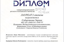 Поздравляем ученицу оркестрового отдела ДМШ №1 Галямову Малику с лауреатством II степени в Международном фестиваль-конкурсе искусств «Возрождение»!