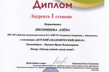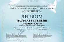 Поздравляем ученика вокального отдела ДМШ №1 Спиридонова Артема с лауреатством I степени во Всероссийском конкурсе инструментального, вокального, хореографического, театрального и декоративно-прикладного искусства «СМУГЛЯНКА»!