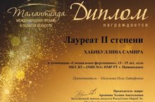 В Международной премии в области искусств «Талантиада» лауреатом II степени стала Хабибуллина Самира!