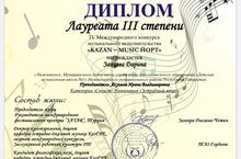 Поздравляем ученицу ДМШ №1 Зайцеву Дарину с лауреатством III степени в IV Международном конкурсе музыкального исполнительства «KAZAN - MUSIC Йорт»!