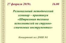 27 февраля на базе МБУ ДО «ДМШ №1» НМР РТ прошёл Региональный методический семинар-практикум «Штриховая техника исполнителей на струнно-смычковых инструментах».