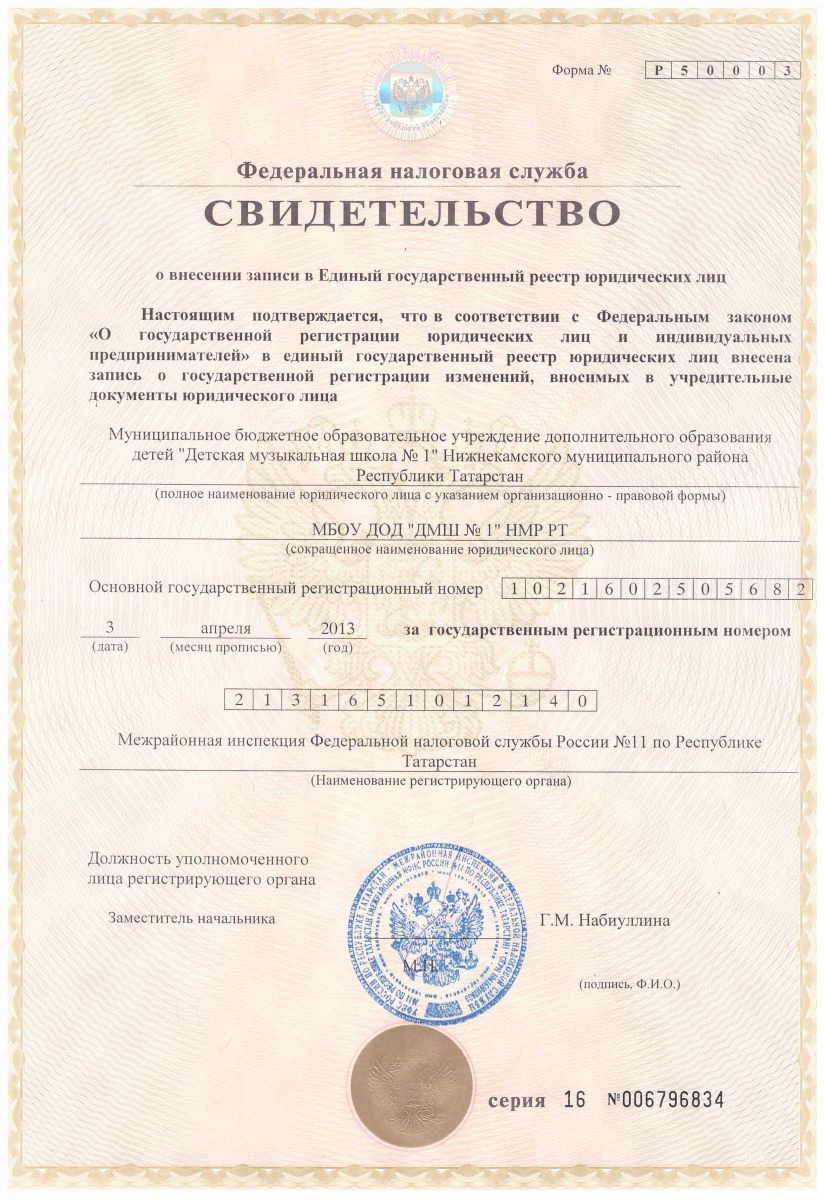 - Свидетельство о внесении записи в ЕГРЮЛ