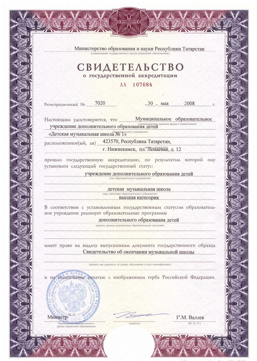 Муниципальное бюджетное учреждение дополнительного образования "Детская музыкальная школа № 1" Нижнекамского муниципального района Республики Татарстан