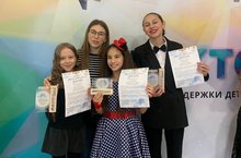 Трио в составе: Клешнина Дарина, Талипова Лейсян -ДМШ N 4,Рябов Максим -ДМШ N 1- Лауреаты 1 ст.