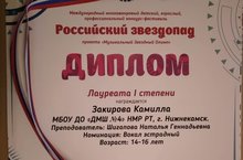 25 октября 2020 г. в г. Казань прошел Международный многожанровый детский, взрослый, профессиональный конкурс – фестиваль «Российский звездопад» проекта «Музыкальный Звездный Олимп» где учащаяся МБУ ДО «ДМШ № 4» НМР РТ Закирова Каилла стала Лауреатом I степени в номинации эстрадный вокал.