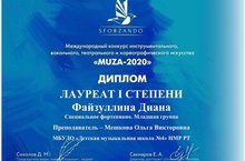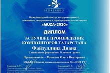 Международный конкурс инструментального, вокального, театрального и хореографического искусства "MUZA - 2020" номинация "Лучшее произведение композиторов Татарстана. Младшая группа." 12.04.2020