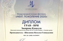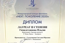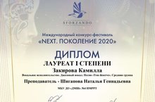 Международный конкурс-фестиваль "NEXT. Поколение 2020" номинация "Фортепиано. Соло. Средняя группа Б." 25.04.2020