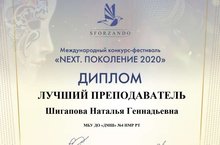 25 апреля 2020 года, прошел Международный конкурс-фестиваль "NEXT. Поколение 2020" (г.Казань), где преподаватель ДМШ № 4, Шигапова Наталья Геннадьевна, получила диплом "Лучший преподаватель".