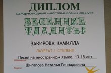Международный многожанровый конкурс "Весенние таланты" номинация "Песня на иностранном языке" 10.04.2020